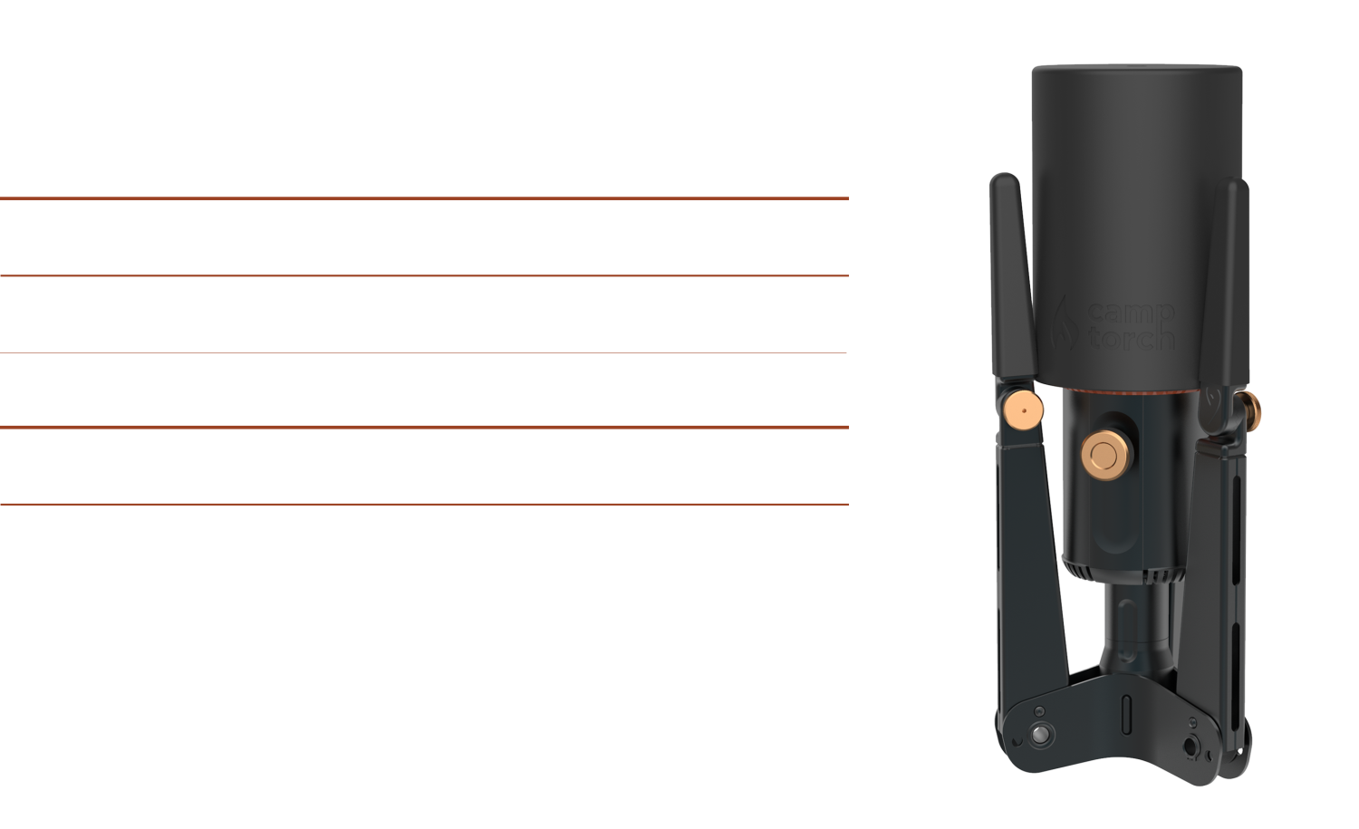CampTorch is crafted from durable, heat-resistant metals and engineered for performance on any surface: dirt, gravel, grass, or patio. Silicone covers keep gear clean when packed, and quick-connect fittings deliver frustration‑free setup without tools.